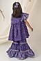 Featuring a purple top for girls in muslin base with hand embroidery and bandhani. It is paired with bandhani printed sharara pants. Style it with sandals and hair accessories for wedding ceremonies.