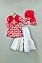 Featuring a red kurta for girls in chanderi brocade base with a round-neckline and floral embroidery. It is paired with white chanderi flared sharara pants having kantha embroidery and an organza red dupatta. Style it with juttis and a cute hair accessory, perfect for pooja ceremonies, weddings or family celebrations.