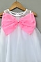 Featuring a white flared dress for girls in organza base with a statement bow, sheer neckline and pearl accents. Style it with sandals and hair accessories for festive occasion or birthday party.