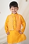 Yellow Muslin Bandhani Kurta Set For Boys