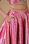 Featuring a gajri pink lehenga in banarasi silk base with dabka, beads and cutdana hand embroidery. It is paired with an embroidered blouse and a dupatta. Accentuate it with zircon jewellery and block heels for a sangeet or wedding ceremony.