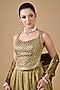 Featuring a gold lehenga in imported tissue base. It is paired with a blouse having mirror and aari hand embroidery, including a dupatta. Accentuate it with zircon jewellery and block heels for a sangeet or wedding ceremony.