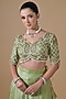 Featuring a mint green lehenga in imported tissue base. It is paired with a blouse having cutdana, pearls and beads hand embroidery, including a dupatta. Accentuate it with zircon jewellery and block heels for a wedding or mehendi ceremony.
