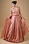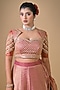 Featuring a pink lehenga in imported tissue base. It is paired with a blouse having mirror and zari hand embroidery, including a dupatta. Accentuate it with zircon jewellery and block heels for a sangeet or wedding ceremony.