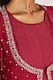 Featuring a maroon anarkali in chanderi base with kasab and gota embroidery. It is paired with matching lycra net churidar pants, cotton silk inner, and a grey organza dupatta having lace detailing.