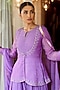 Featuring a royal purple anarkali in chanderi base with gota dori, resham dori tikki, and gota lampi hand embroidered aztec shapes including full sleeves. It is paired with matching lycra net churidar pants, a peplum jacket, and a chiffon dupatta.