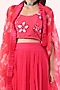 Featuring a hot pink pleated lehenga in crepe base with floral motif print. It is paired with a matching blouse and a dupatta in silk organza base.