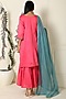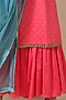 Featuring a candy pink kurta in chanderi base with hand embroidery. It is paired with matching gharara pants and a teal net dupatta. Accentuate with statement jewellery and heels for a pooja ceremony or festive occasion.