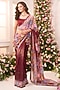 Maroon Crystal Satin Floral Printed Pre-Draped Saree Set