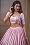 Featuring a peach lehenga in cotton base with floral print. It is paired with a matching hand embroidered blouse.