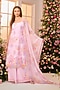 Featuring a pink kurta in crystal satin base with floral print and hand embroidery. It is paired with sharara pants and a dupatta. Accentuate it with zircon earrings and heels for festive celebrations or daytime weddings.