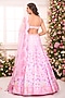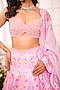 Featuring a pink and lavender lehenga in satin base with floral print, beads and crystal hand embroidery. It is paired with a blouse and a dupatta. Accentuate it with zircon jewellery and heels for a wedding, engagement or sangeet ceremony.