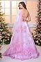 Featuring a pink ombre lehenga in satin base with butterfly print, beads and crystal hand embroidery. It is paired with a blouse and a dupatta. Accentuate it with zircon jewellery and heels for a wedding or sangeet ceremony.