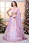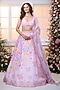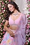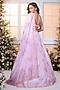 Featuring a pink lehenga in satin base with floral print, beads and crystal hand embroidery. It is paired with a blouse and a dupatta. Accentuate it with zircon jewellery and heels for a wedding, engagement or sangeet ceremony.