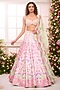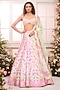 Pista Green & Pink Ombre Satin Hand Embroidered Lehenga Set
