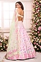 Featuring a pista green and pink ombre lehenga in satin base with floral print, beads and crystal hand embroidery. It is paired with a blouse and a dupatta. Accentuate it with zircon jewellery and heels for a wedding, engagement or mehendi ceremony.