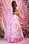 Featuring a rose pink lehenga in dull satin base with floral print, beads and crystal hand embroidery. It is paired with a blouse and a georgette dupatta. Accentuate it with statement jewellery and heels for weddings or sangeet ceremonies.