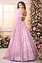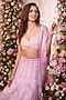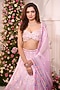 Featuring a rose pink lehenga in satin base with floral print, beads and crystal hand embroidery. It is paired with a blouse and a dupatta. Accentuate it with zircon jewellery and heels for a wedding or sangeet ceremony.