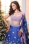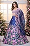 Royal Blue Crystal Satin Floral Printed & Bead Embroidered Lehenga Set
