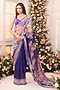 Royal Blue Crystal Satin Floral Printed Pre-Draped Saree Set
