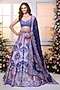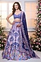 Featuring a royal blue lehenga in satin base with floral print, beads and crystal hand embroidery. It is paired with a blouse and a dupatta. Accentuate it with zircon jewellery and heels for a wedding or sangeet ceremony.