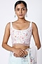 Featuring a sky blue and baby pink ombre saree in cotton base with aari and pearl embroidery. It is paired with a matching blouse.