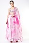 Featuring a white and pink shibori dyed lehenga in cotton satin base with embroidery. It is paired with a matching blouse and a dupatta.