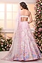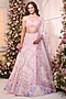 Featuring a white and pink lehenga in satin base with floral print, beads and crystal hand embroidery. It is paired with a blouse and a dupatta. Accentuate it with zircon jewellery and heels for a wedding, engagement or sangeet ceremony.