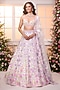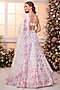 Featuring a white and pink lehenga in satin base with floral print, beads and crystal hand embroidery. It is paired with a blouse and a dupatta. Accentuate it with zircon jewellery and heels for a wedding, engagement or sangeet ceremony.
