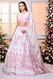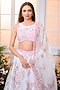Featuring a white and pink lehenga in satin base with butterfly print, beads and crystal hand embroidery. It is paired with a blouse and a dupatta. Accentuate it with zircon jewellery and heels for a wedding, engagement or sangeet ceremony.