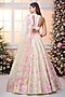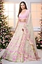 Featuring a yellow and rose pink lehenga in satin base with floral print, beads and crystal hand embroidery. It is paired with a blouse and a dupatta. Accentuate it with zircon jewellery and heels for a wedding or haldi ceremony.