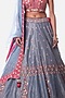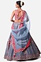 Featuring a blue lehenga in tissue base with zardosi embroidery. It is paired with a contrasting hot pink blouse and a dupatta.