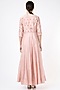 Featuring a blush pink anarkali in mukaish chanderi and net base with cutdana and resham embroidery. It is paired with a matching jacket and a dupatta.