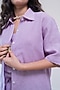 Featuring a lilac shirt in a linen base. It is paired with a matching crop top and shorts.