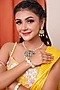 Featuring a gold finish long necklace studded with kundan polki and multi-colored stones, set in brass. It is paired with a matching pair of earrings. Ideal for festive occasions or wedding ceremony.
