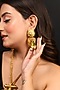 Featuring a gold finish sunflower-shaped long necklace studded with kundan polki and pearl beads, set in brass. It is paired with a matching pair of long earrings. Perfect wear for a festive occasion or wedding ceremony.