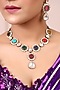 Featuring a necklace studded with uncut polki and multi-colored stones, set in brass. It is paired with a matching pair of earrings. Ideal for festive occasions or wedding ceremony.