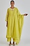 Featuring a lime yellow dupatta in chanderi silk base with lace-like embroidery and dotted block print. Accentuate it with a kurta set, statement earrings and heels for festive occasions.