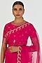 Featuring a red blouse in fine handwoven silk base with marodi embroidery and floral motif embellishment. Style it with a saree, statement jewellery and heels for a festive occasion or wedding.