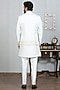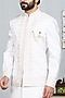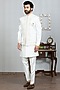Featuring a pista green nehru jacket in russian silk base with floral embroidery. It is paired with a matching cotton russian silk kurta and pants.