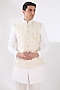 Fawn Russian Silk Thread Embroidered Nehru Jacket Set