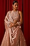 Featuring a blush pink lehenga in silk base with thread, sequins, stone and zari hand embellishments. It is paired with a blouse and an embroidered dupatta. Accentuate it with zircon jewellery, a polti bag and block heels for a wedding, sangeet or engagement ceremony.