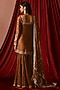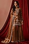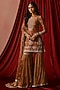 Featuring a brown kurta in satin base with beads, sequins and zari embroidery. It is paired with gharara pants and a dupatta. Accentuate it with statement earrings, a sleek braid and metallic heels, perfect for festive occasions or sangeet ceremony.