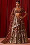 Featuring a brown lehenga in tissue base with cord, sequins and zari embroidery. It is paired with a blouse and an embroidered dupatta. Accentuate it with zircon jewellery, a polti bag and block heels for a wedding, sangeet or engagement ceremony.