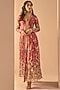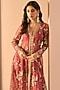 Lashkaraa features a mesmerizing Coral Jacket Set that captivates with its elegance. The eye-catching jacket is crafted in net with zari, stone and sequins embroidery. It is paired with a satin top and pants. Accessorize the designer jacket set with statement earrings and heels for festive occasions or wedding ceremonies.