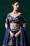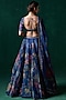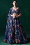 Dark Blue Organza Floral Printed & Embellished Lehenga Set