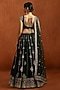 Featuring a dark green lehenga in velvet base with thread, zari, sequins and cording work. It is paired with an embroidered blouse and a dupatta. Accentuate it with zircon or kundan jewellery, a sleek low bun and block heels for a complete ensemble, ideal for wedding, engagement or sangeet celebrations.