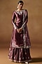 Lashkaraa presents a deep garnet kurta in tissue organza base with thread, sequins and zari hand embroidery. It is paired with sharara pants and a dupatta. Accentuate it with statement earrings and heels for any festive occasion.