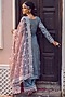 Featuring a dusty blue and purple kurta in satin base with zari, stone, thread and hand embroidery. It is paired with matching satin palazzo pants and a net dupatta.