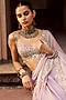 Featuring a dusty lilac saree in silk base with mirror work, zari and sequin embroidery. It is paired with a blouse. Accentuate it with statement earrings and heels for a festive gathering, wedding or engagement ceremony.